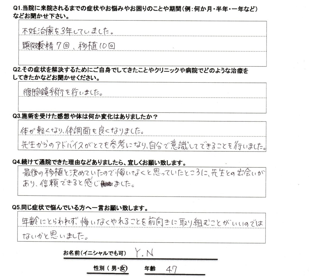 お名前 Y.N 年齢 47歳