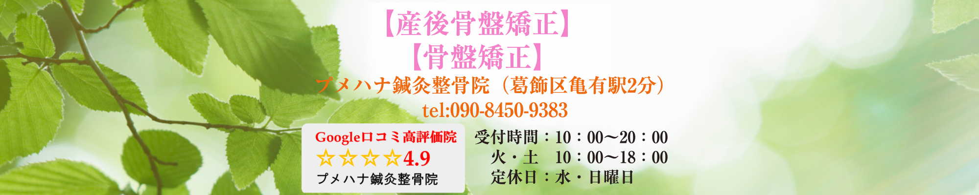 プメハナ鍼灸整骨院(東京都葛飾区亀有)は痛みの改善とアンチエイジングに力を入れています。お気軽にお問合せください。
